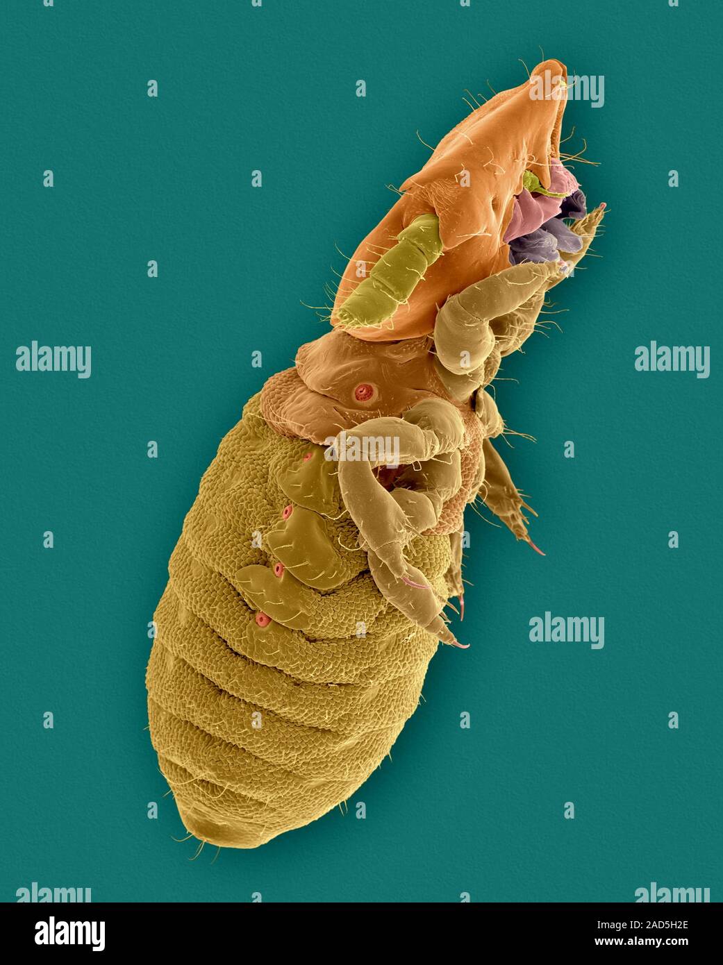 Coloured scanning electron micrograph (SEM) of Short nosed cattle louse