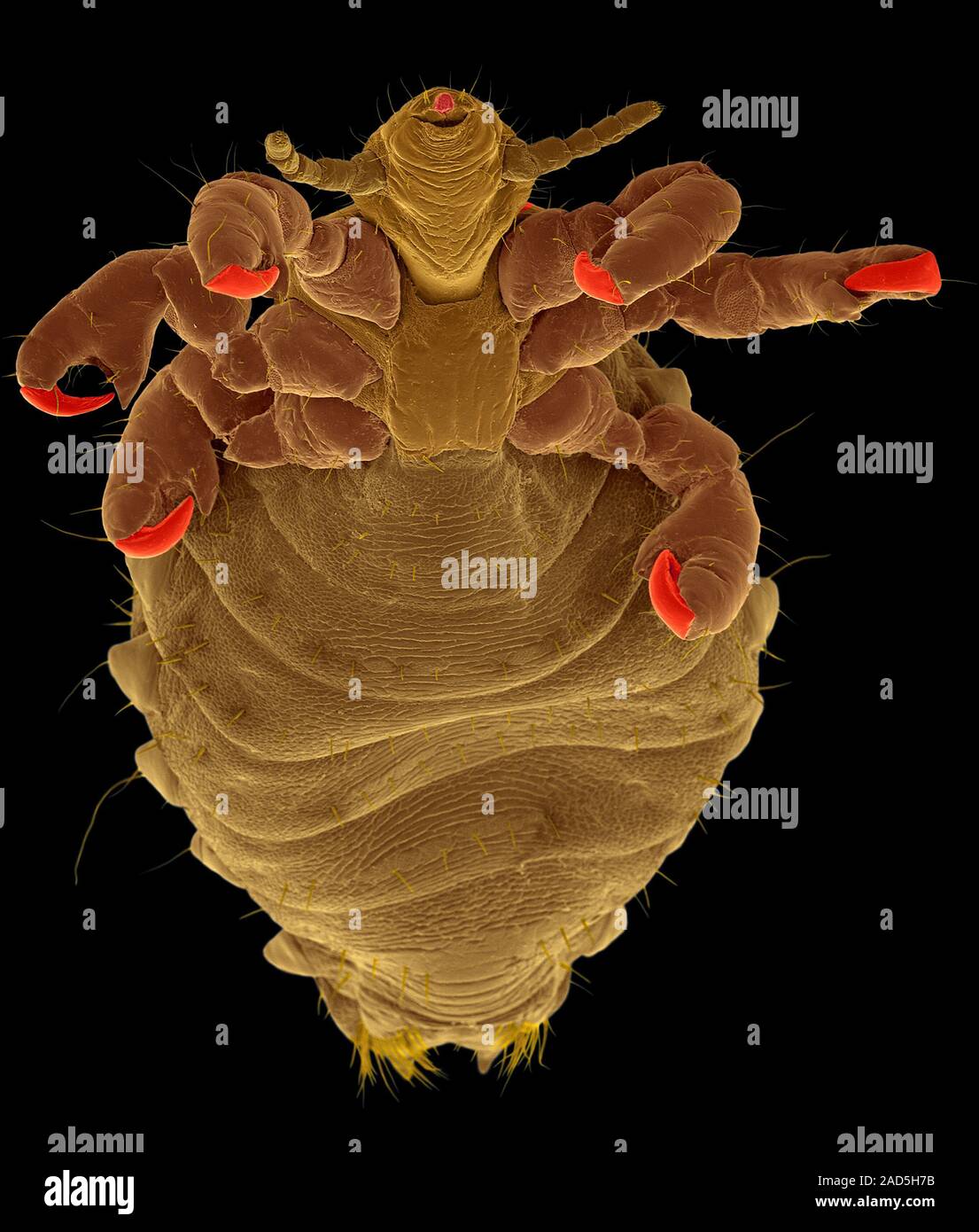 Head louse Coloured scanning electron micrograph (SEM) of a blood