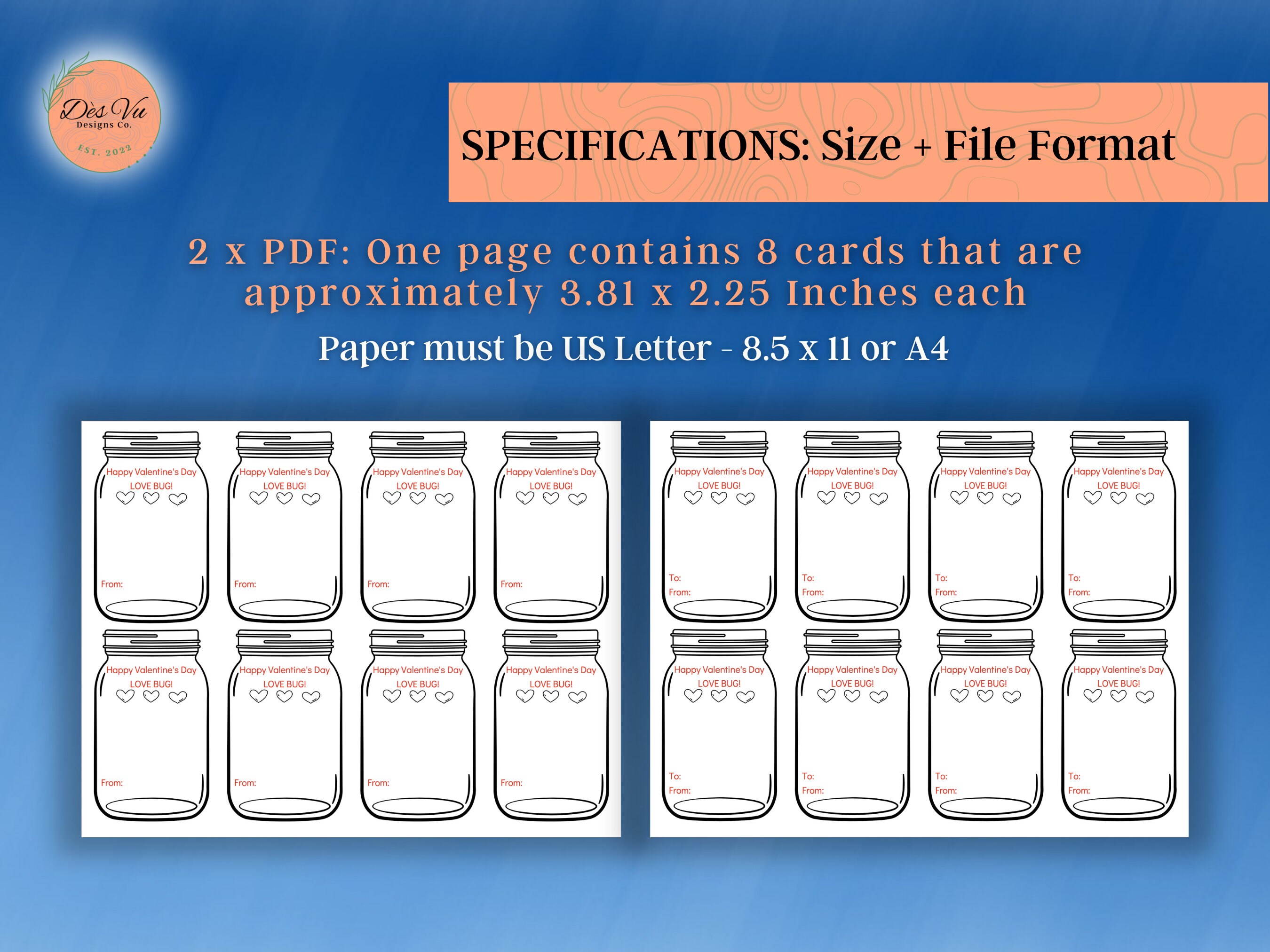 Valentine Card Template Printable Love Bug Valentine Tag Editable Bug