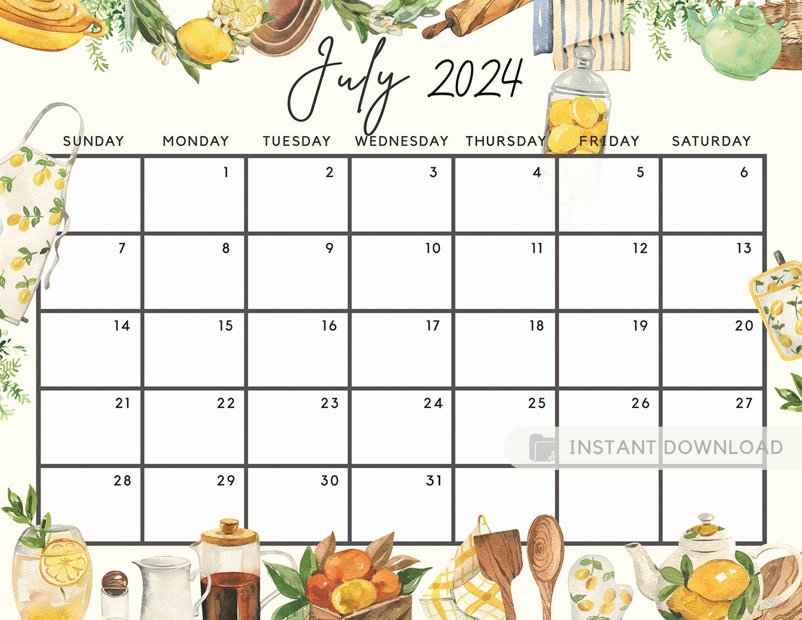 July 2024 Calendar Cute Summer Fresh Lemon Honey Calendar July 24