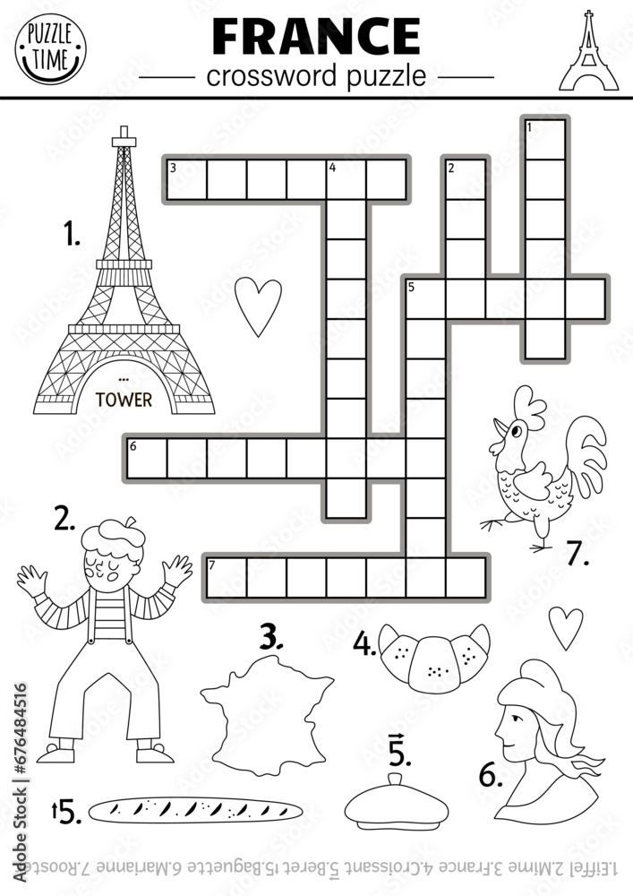 Vector France Crossword Puzzle For Kids Simple French Quiz For