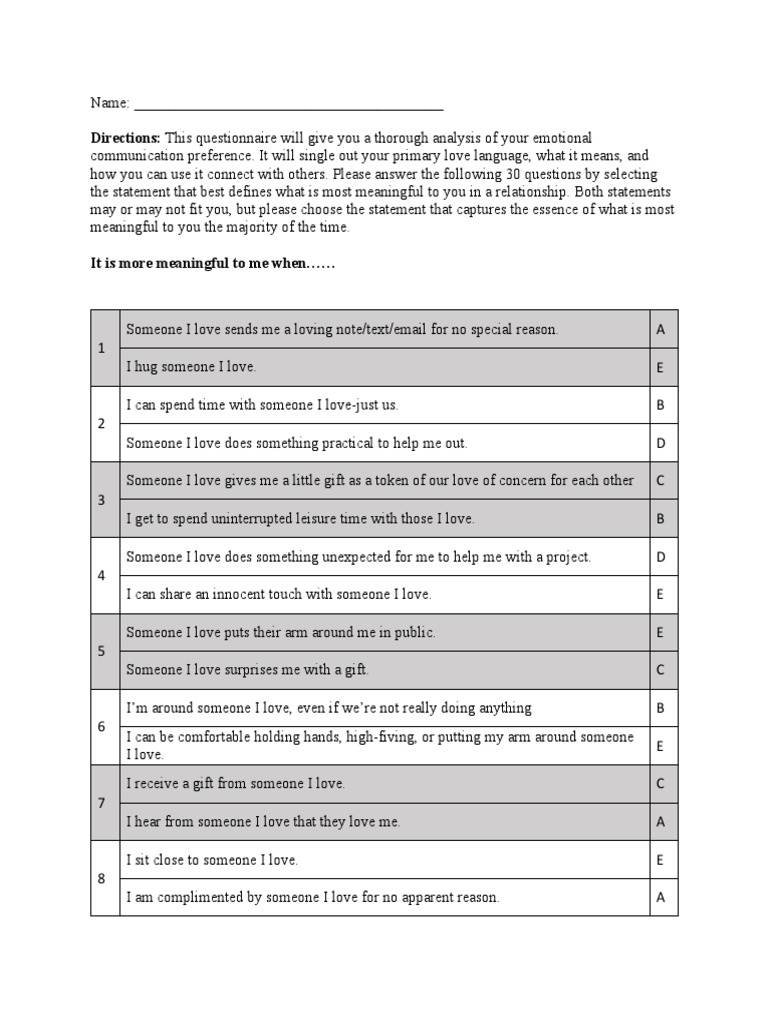 Here are some of the images for Love Languages Quiz Printable that we found in our website database.