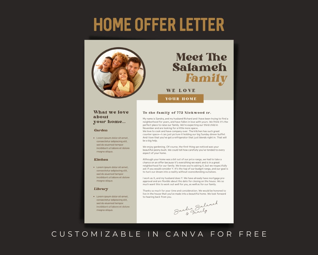 Home Offer Letter Template Editable We Love Your Home Canva Template