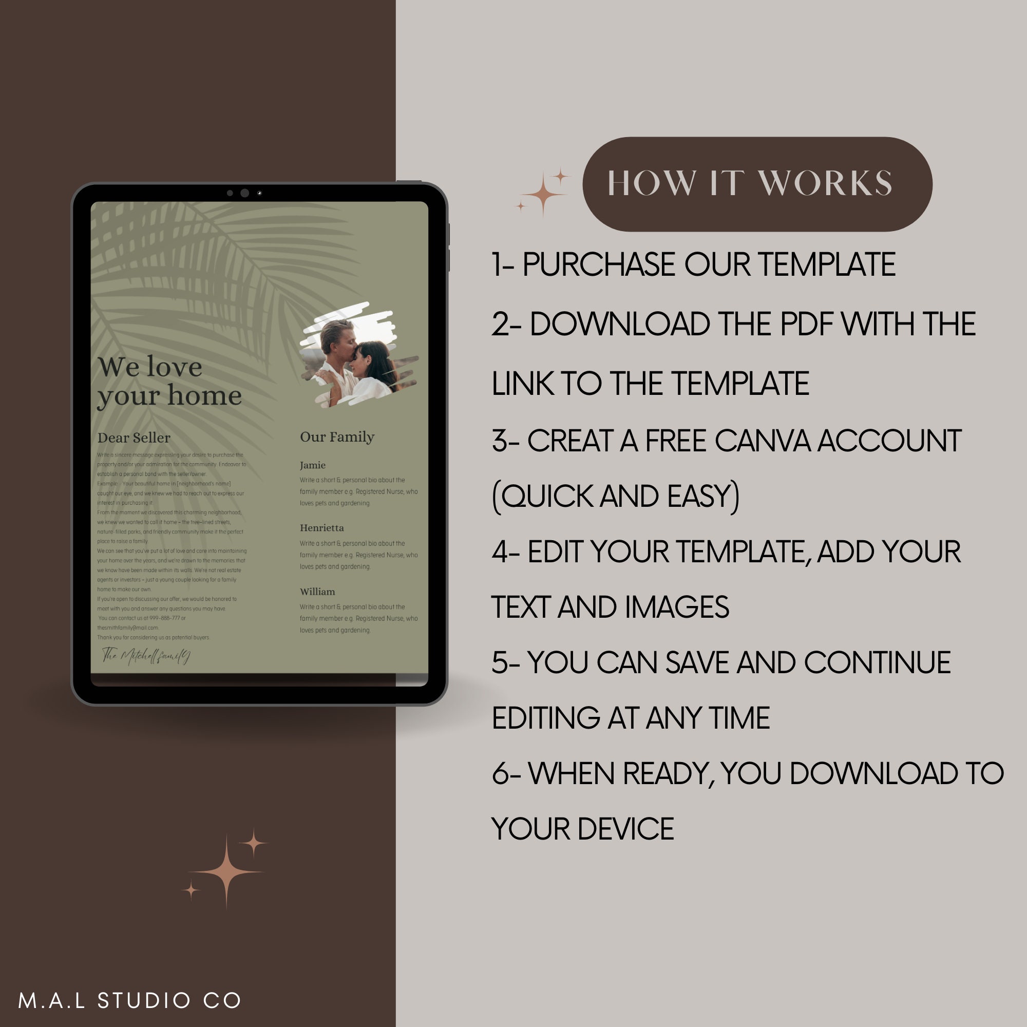 Bohemian Olive Design Home Love Letter Template for Canva Boho We