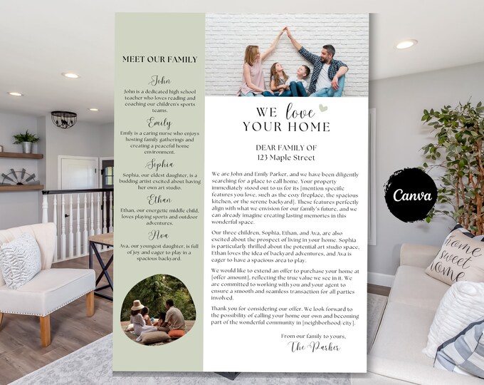 Natural Home Offer Letter Canva Template Home Love Letter to Seller