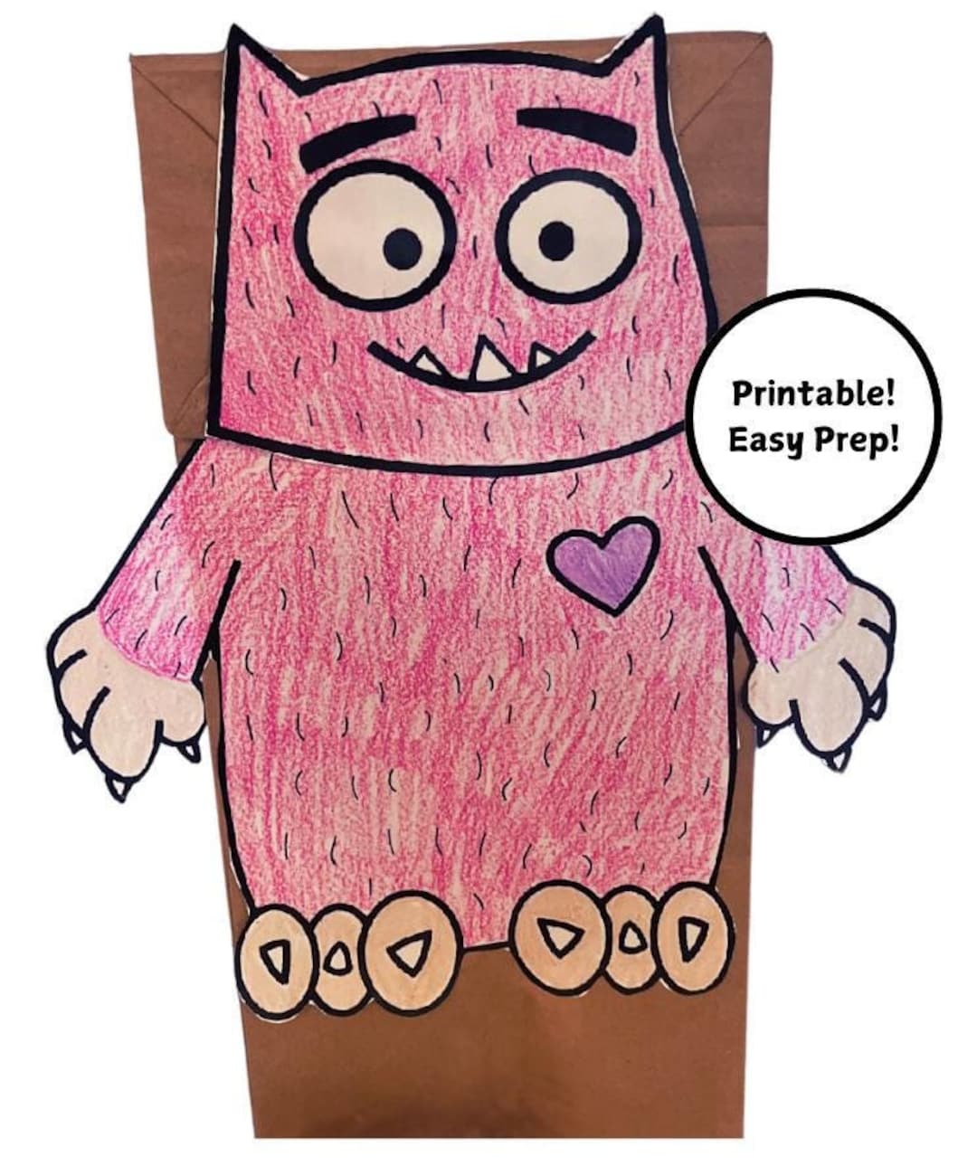 Love Monster Puppet Craft with Free Template
