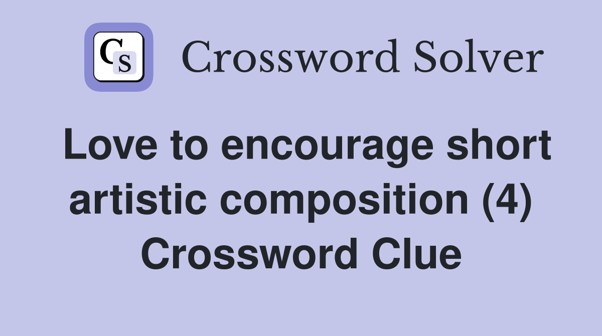Love to encourage short artistic composition (4) Crossword Clue