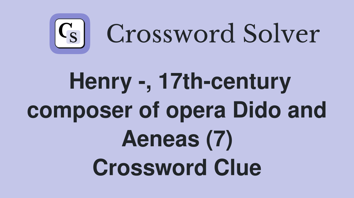 Henry 17th century composer of opera Dido and Aeneas (7) Crossword
