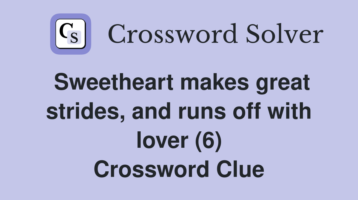Sweetheart makes great strides and runs off with lover (6) Crossword