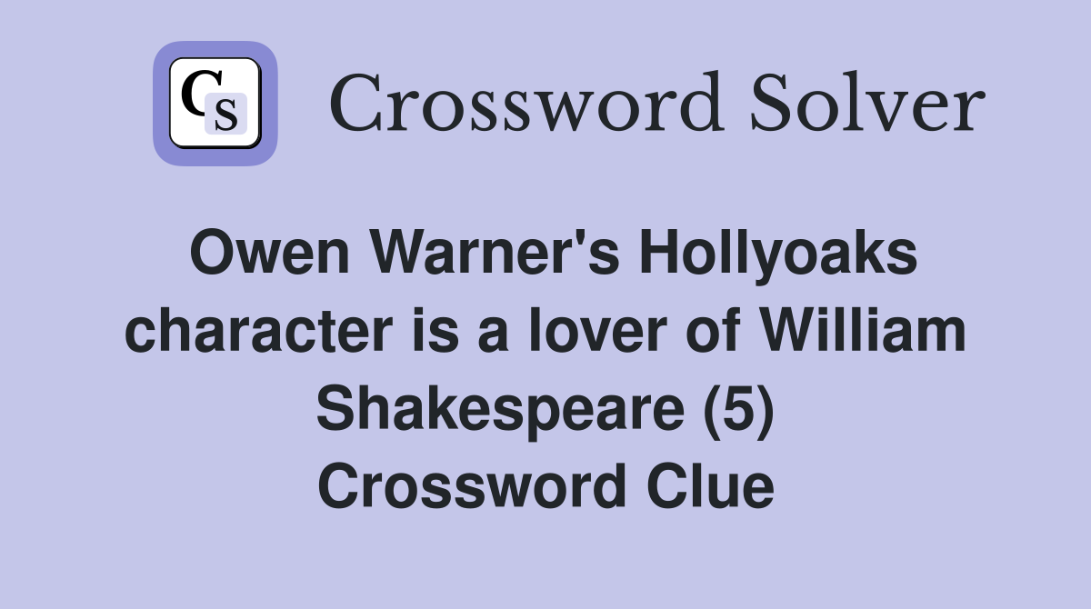Owen Warner #39 s Hollyoaks character is a lover of William Shakespeare (5