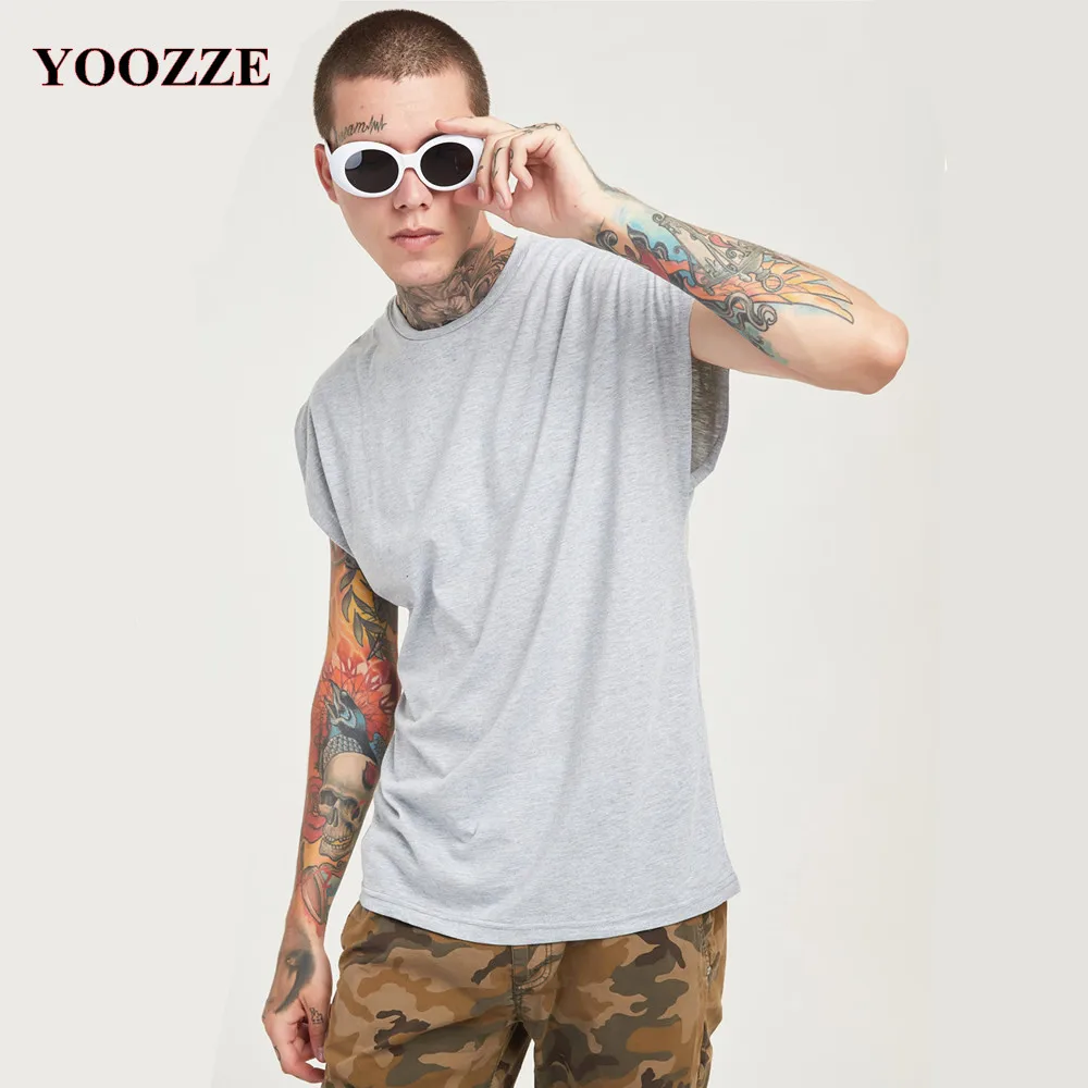 YOOZZE Men Sleeveless T Shirts Low Cut Tee Shirt Oversized Solid Blank