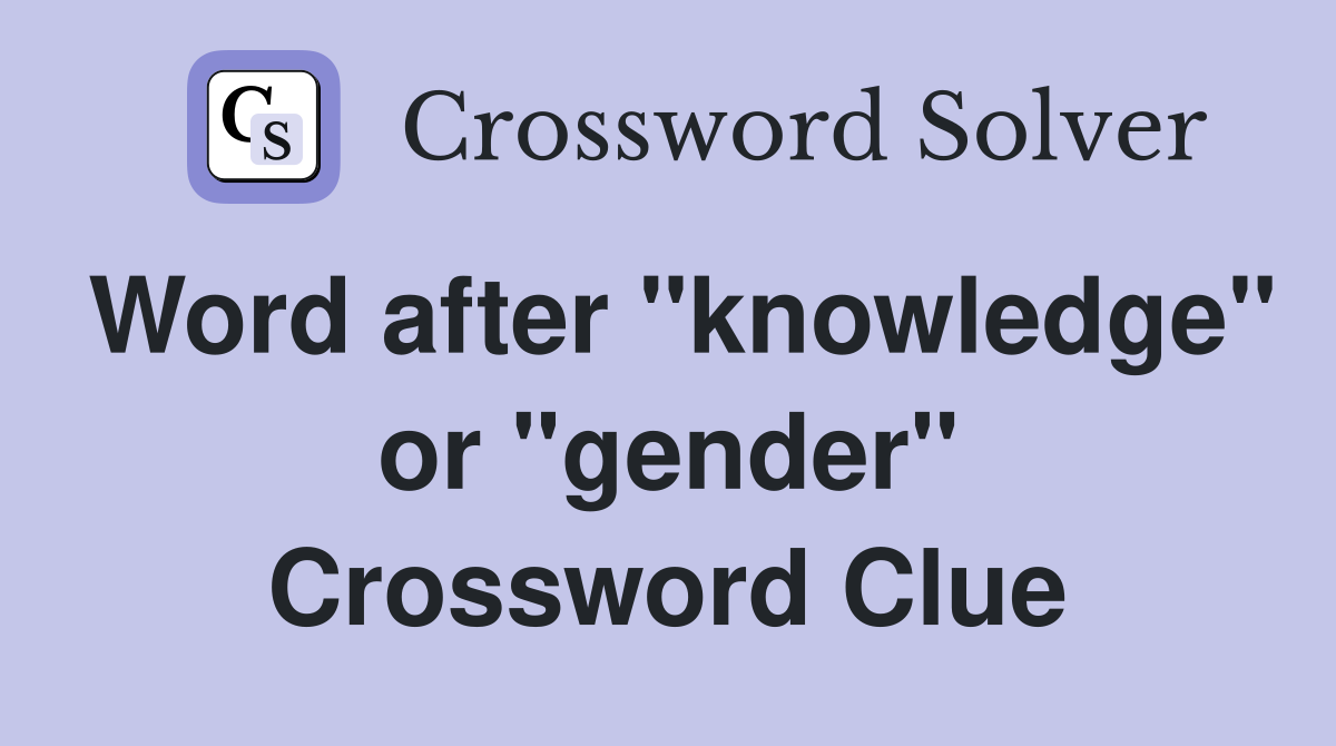 Word after quot knowledge quot or quot gender quot Crossword Clue Answers Crossword