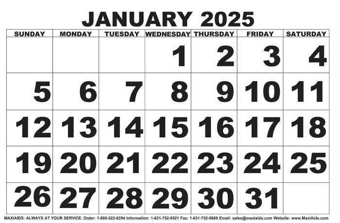 Low Vision Print Calendar 2025 Walmart com