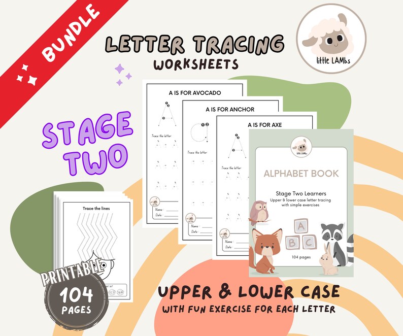 STAGE 2 Alphabet Letter Tracing Worksheets Printable Upper Lower