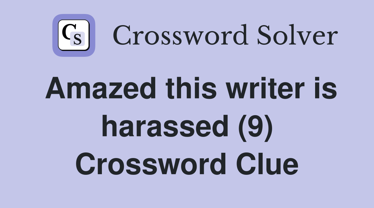 Amazed this writer is harassed (9) Crossword Clue Answers Crossword