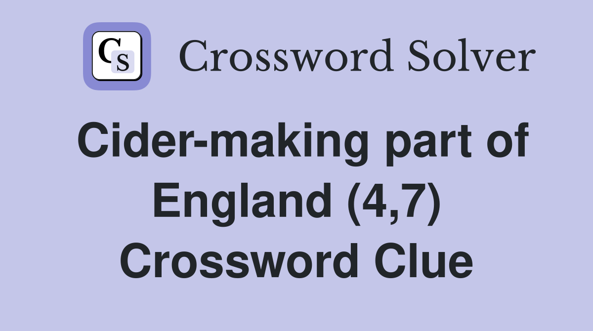 Cider making part of England (4 7) Crossword Clue Answers Crossword