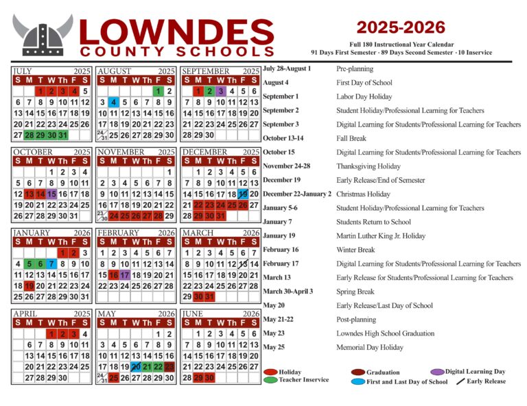 Lowndes County Schools Calendar 2025 2026 Holidays New School Calendar