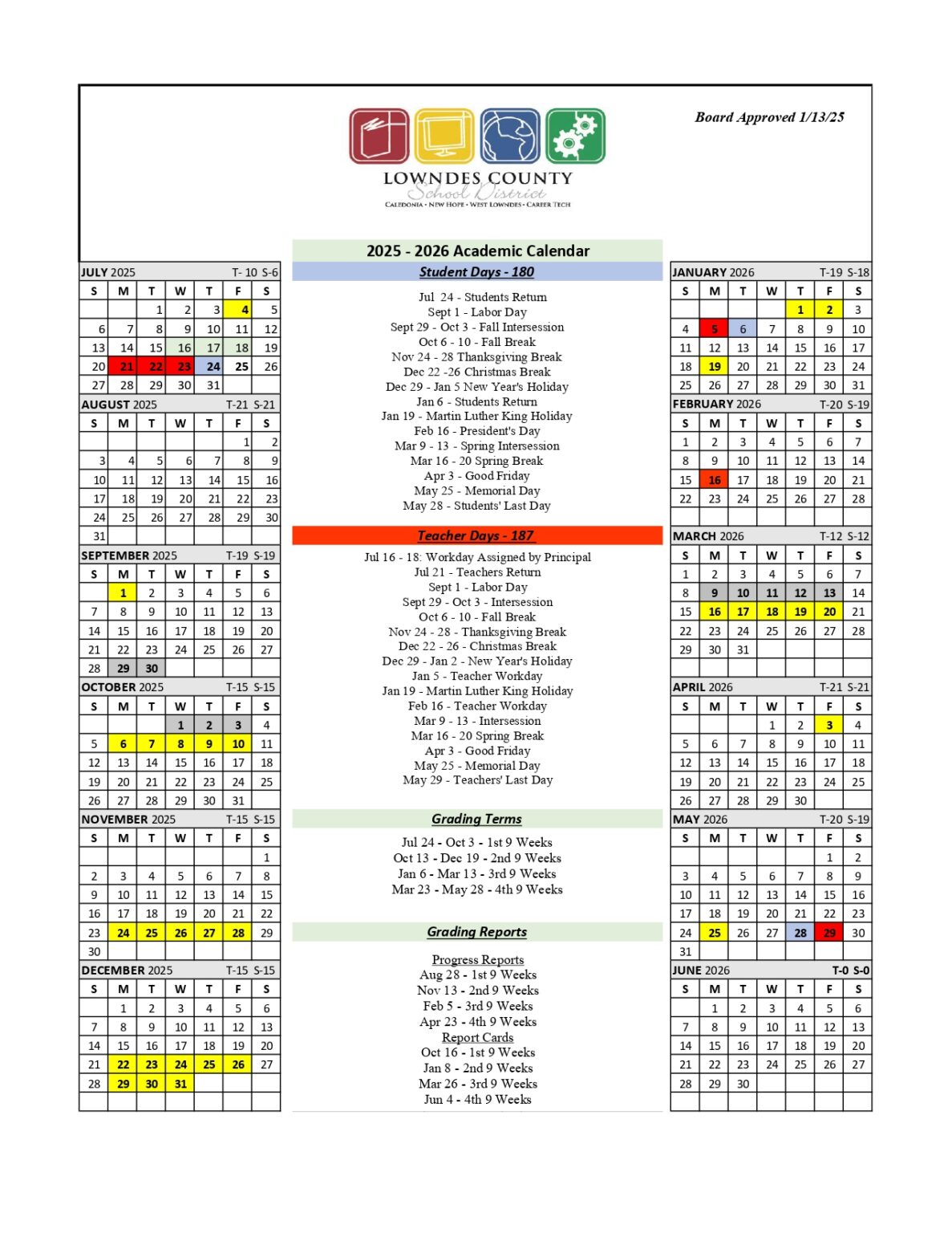 LOWNDES COUNTY School District MS Calendar 25 26 Revised pdf EduCounty