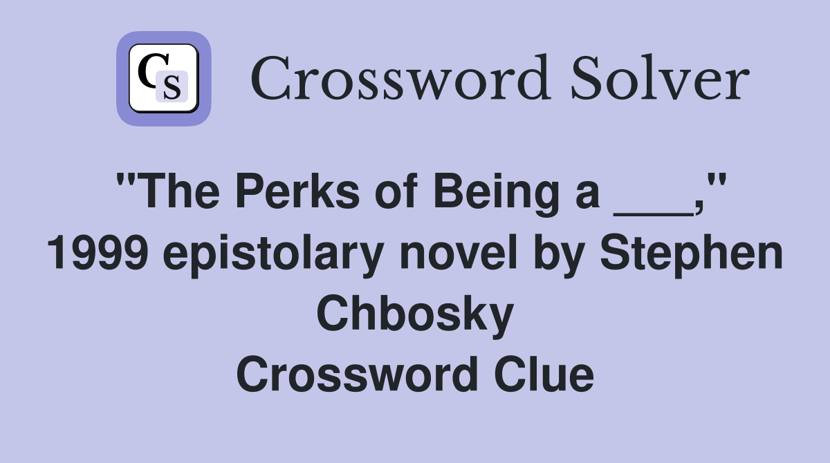 quot The Perks of Being a quot 1999 epistolary novel by Stephen Chbosky