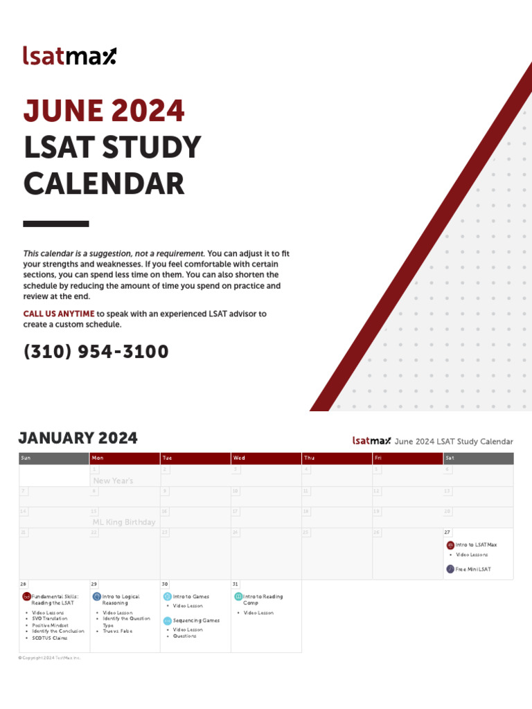 2024 06 JUN 2024 LSAT Study Calendar PDF Law School Admission