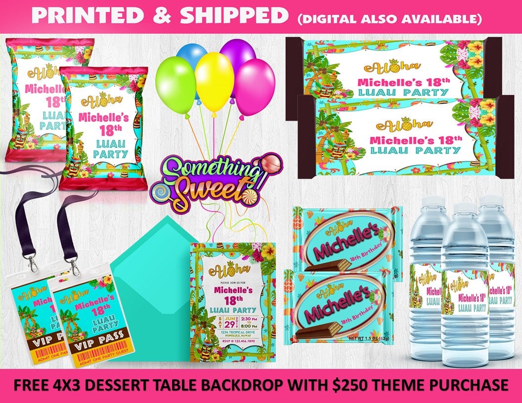 Luau Birthday Party Favors Luau Chip Bags Luau Coloring Etsy