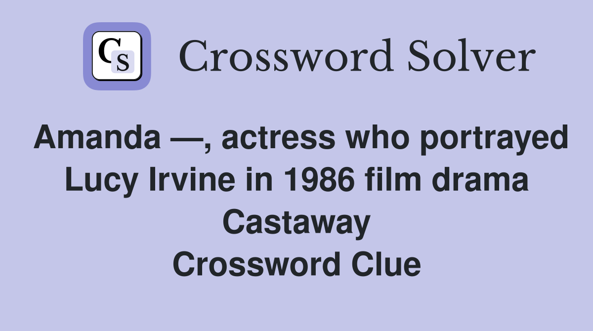 Amanda actress who portrayed Lucy Irvine in 1986 film drama Castaway
