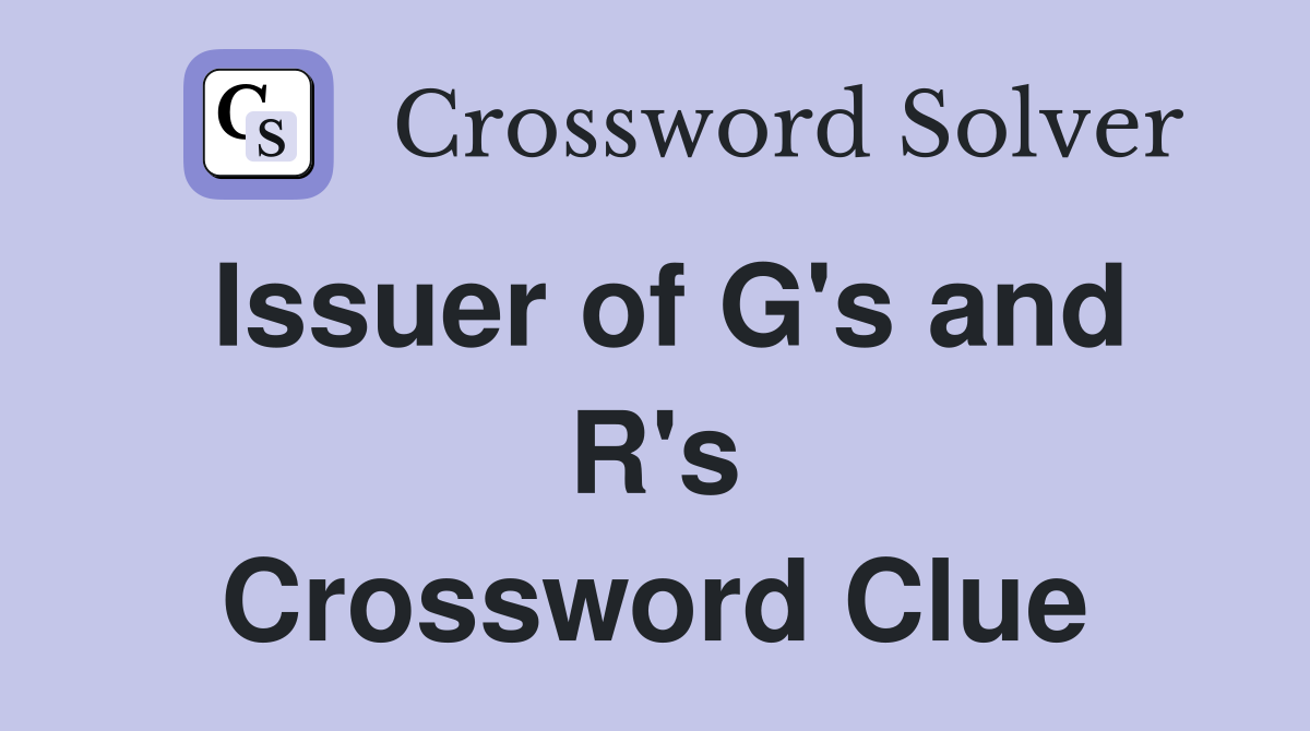 Issuer of G #39 s and R #39 s Crossword Clue Answers Crossword Solver
