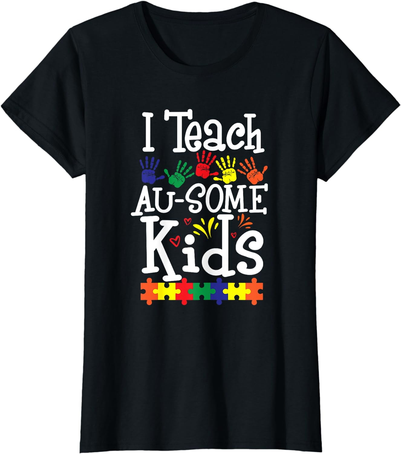 Autism Teacher Puzzle Piece Students Womens Autistic Teach T Shirt