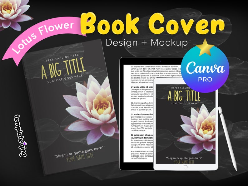 Lotus Flower Premade Book Cover Design Editable Canva Book Cover