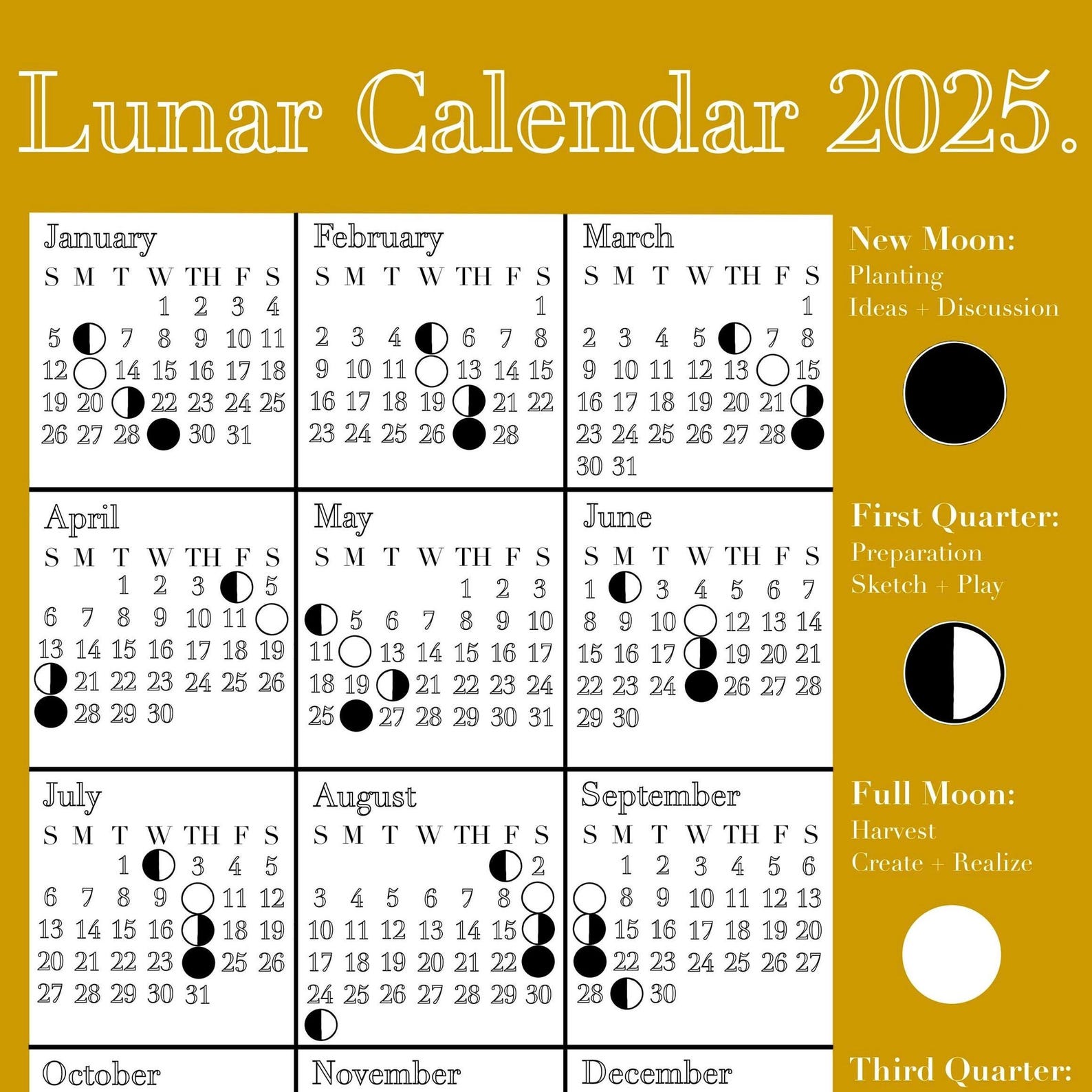 2025 Lunar Calendar Digital Download Moon Planner Calendar