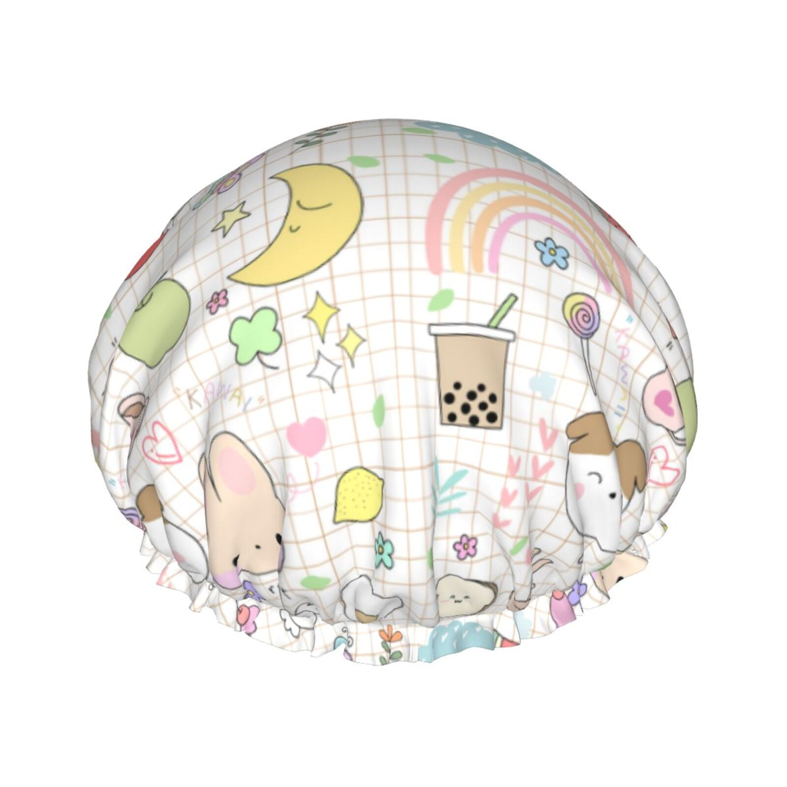 Cartoon Cute Rabbit Moon Rainbow Shower Cap Double Layers Shower Cap