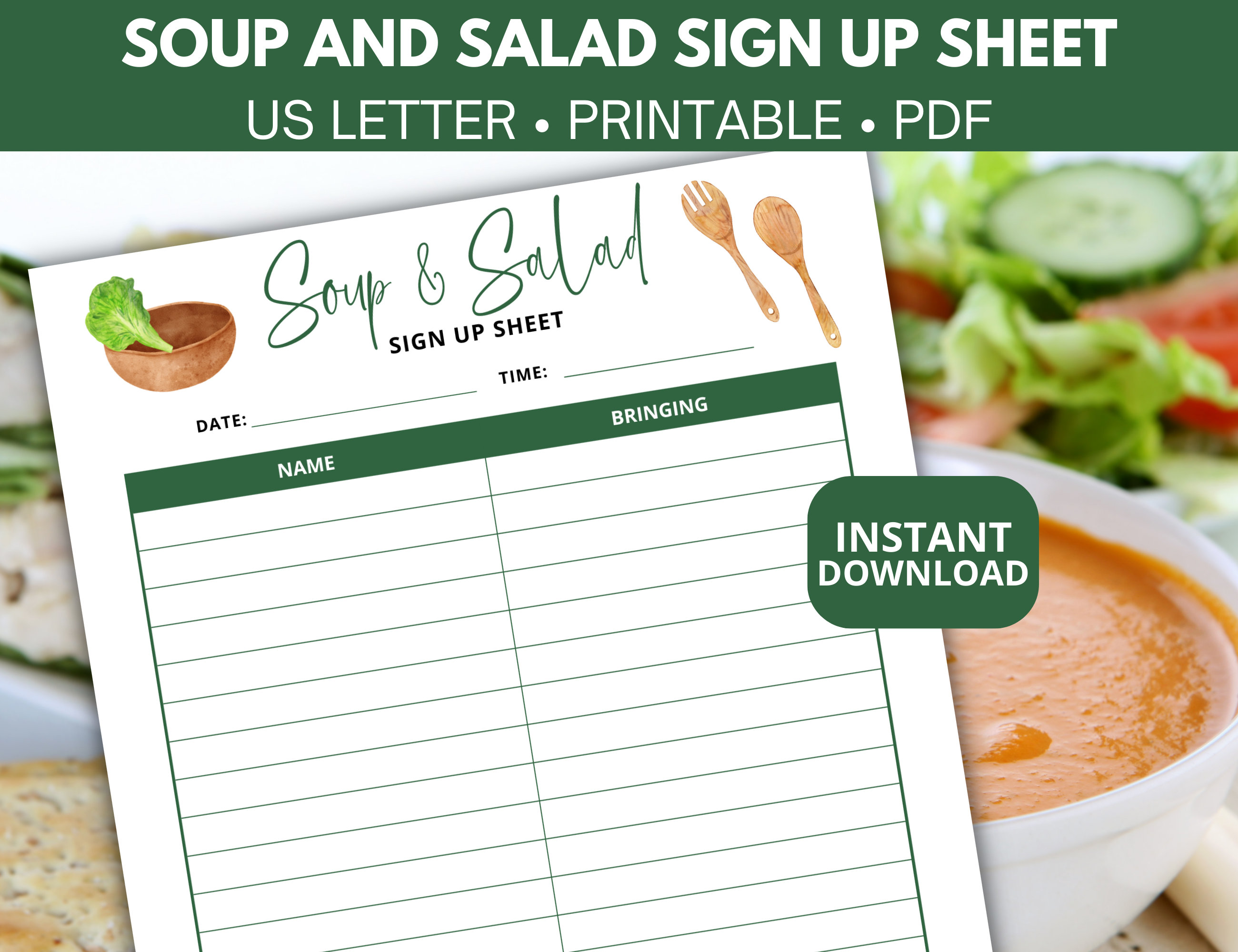 Soup and Salad Sign up Sheet Template Potluck Sign up Sheet Printable