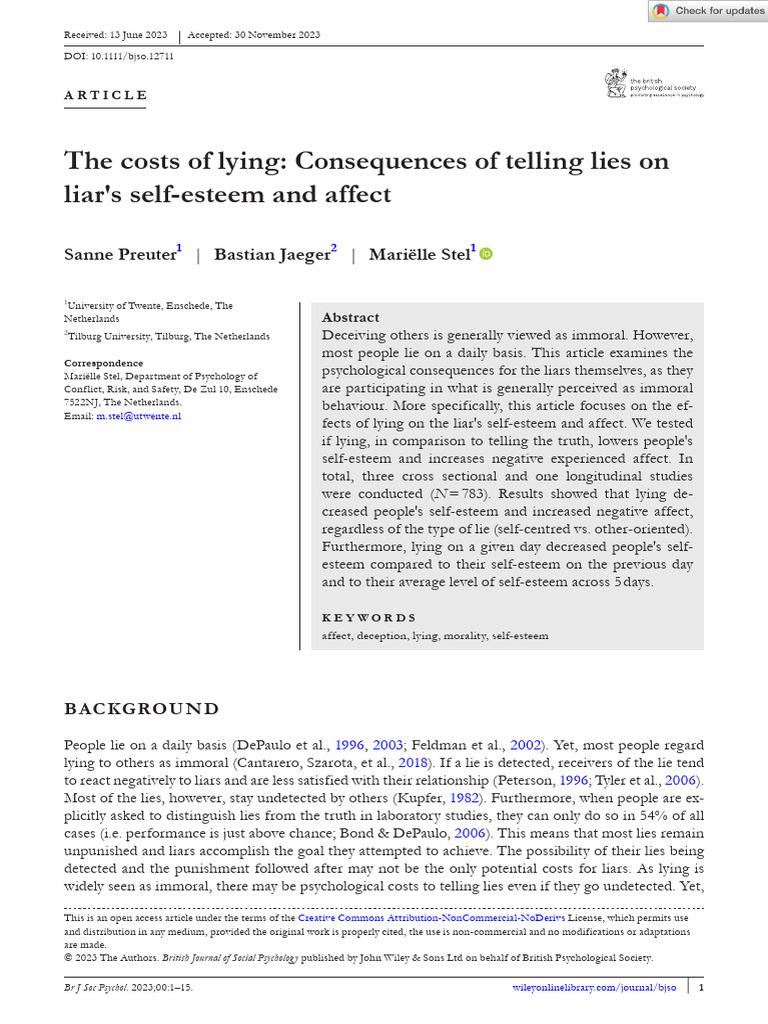 British J Social Psychol 2023 Preuter The Costs of Lying