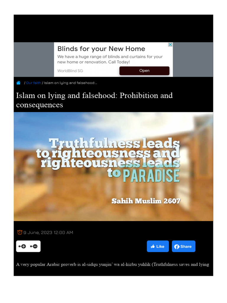 Islam On Lying and Falsehood Prohibition and Consequences Print