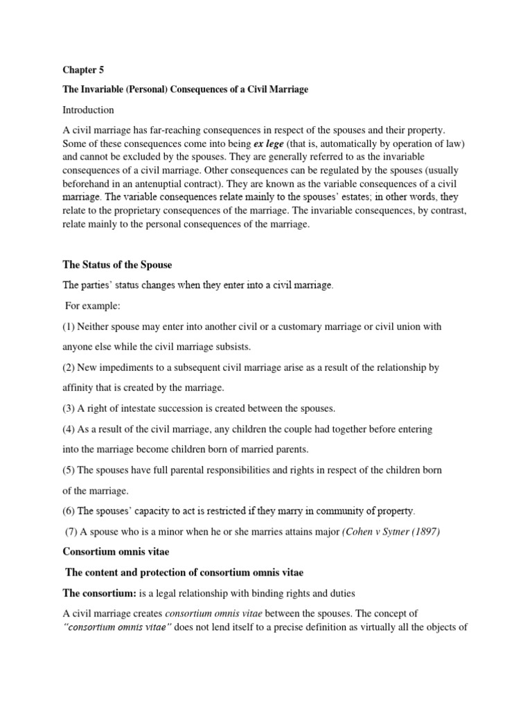 Chapter 5the Invariable (Personal) Consequences of A Civil Marriage