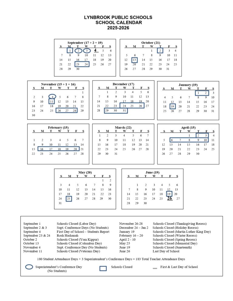 Lynbrook Public Schools Calendar 25 26 REVISED EduCounty