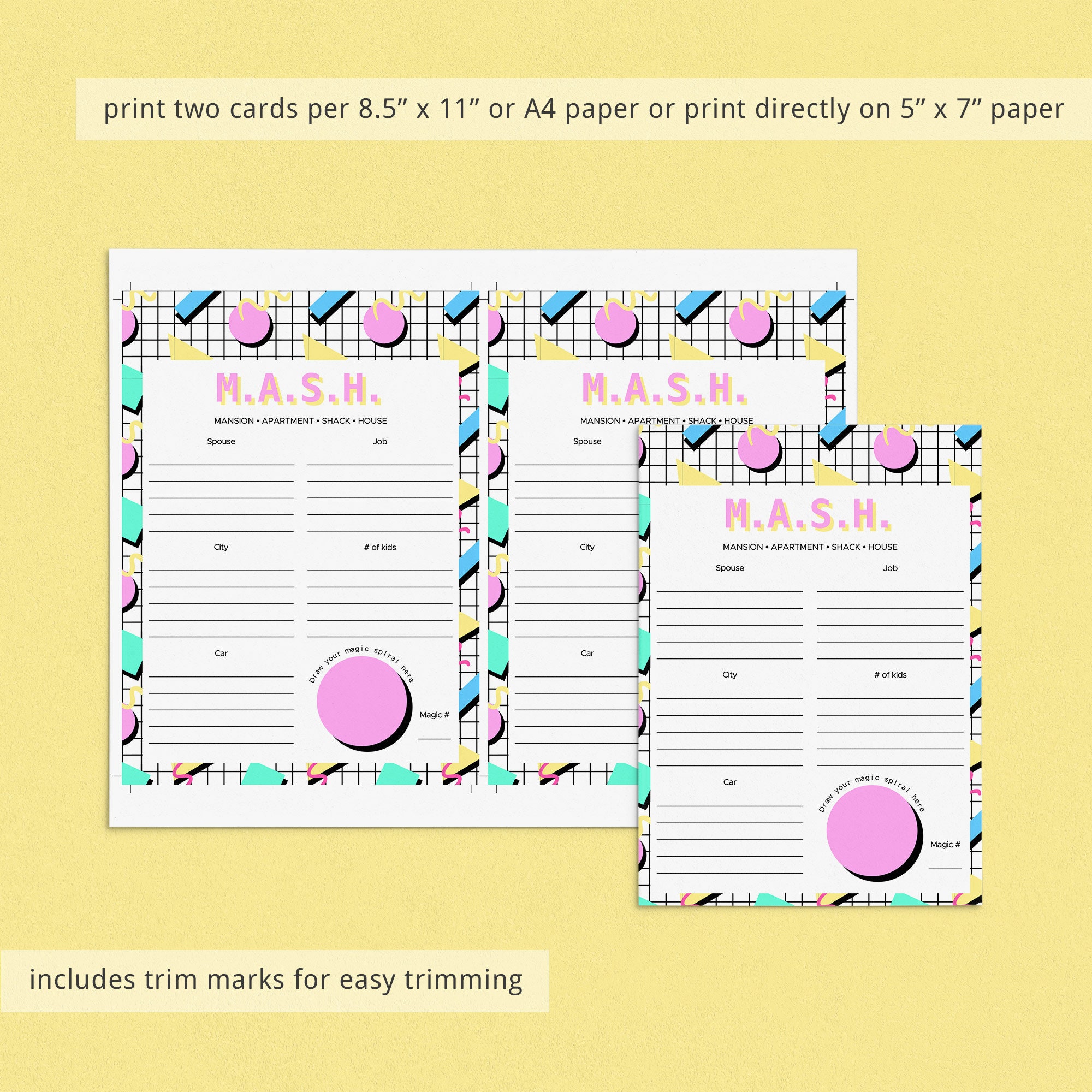 Customizable 90 #39 s M A S H Game Printable Retro Nostalgic Fun