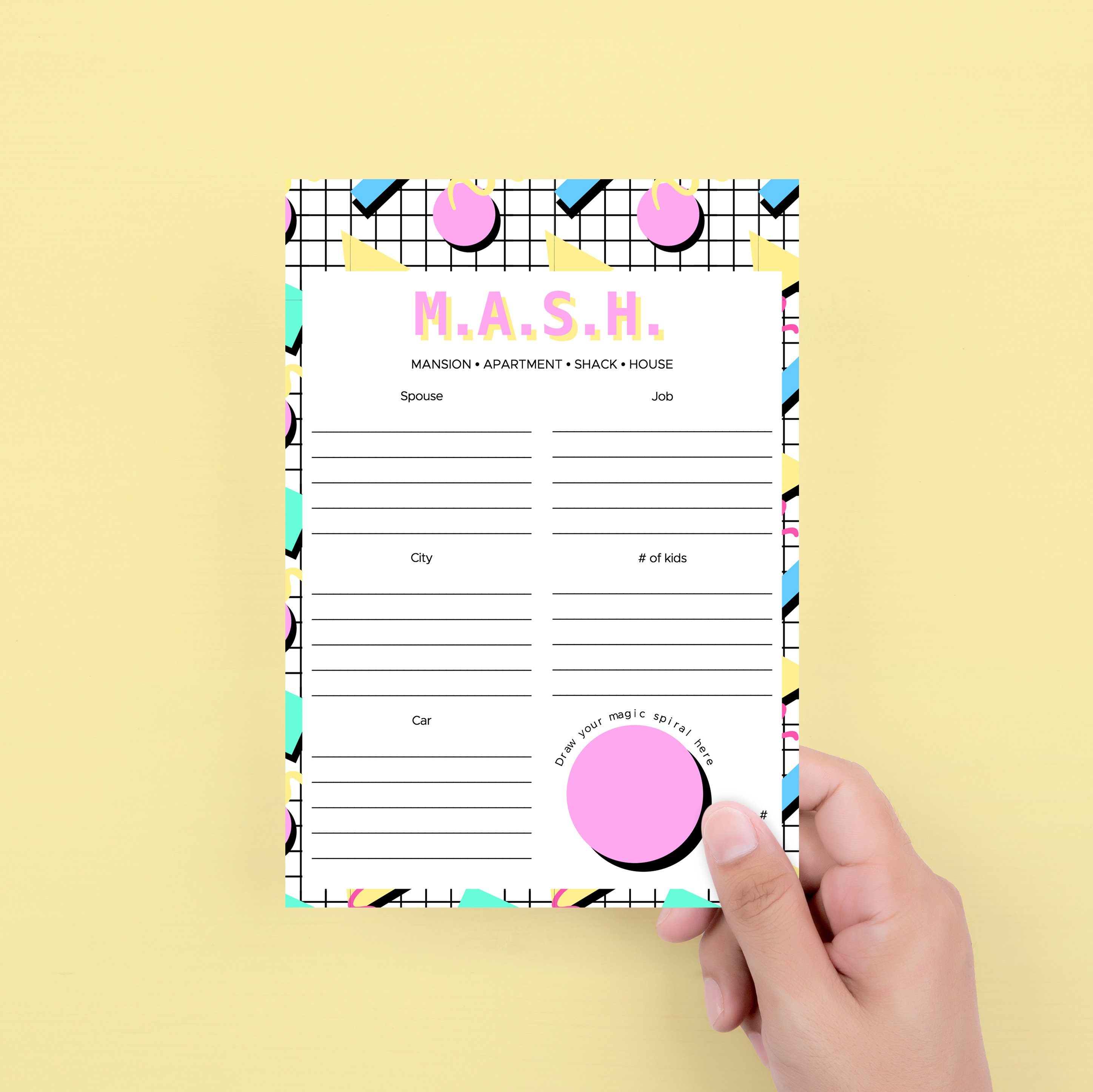 Fun M A S H Game for 90s Party Ideas Back to the Nineties