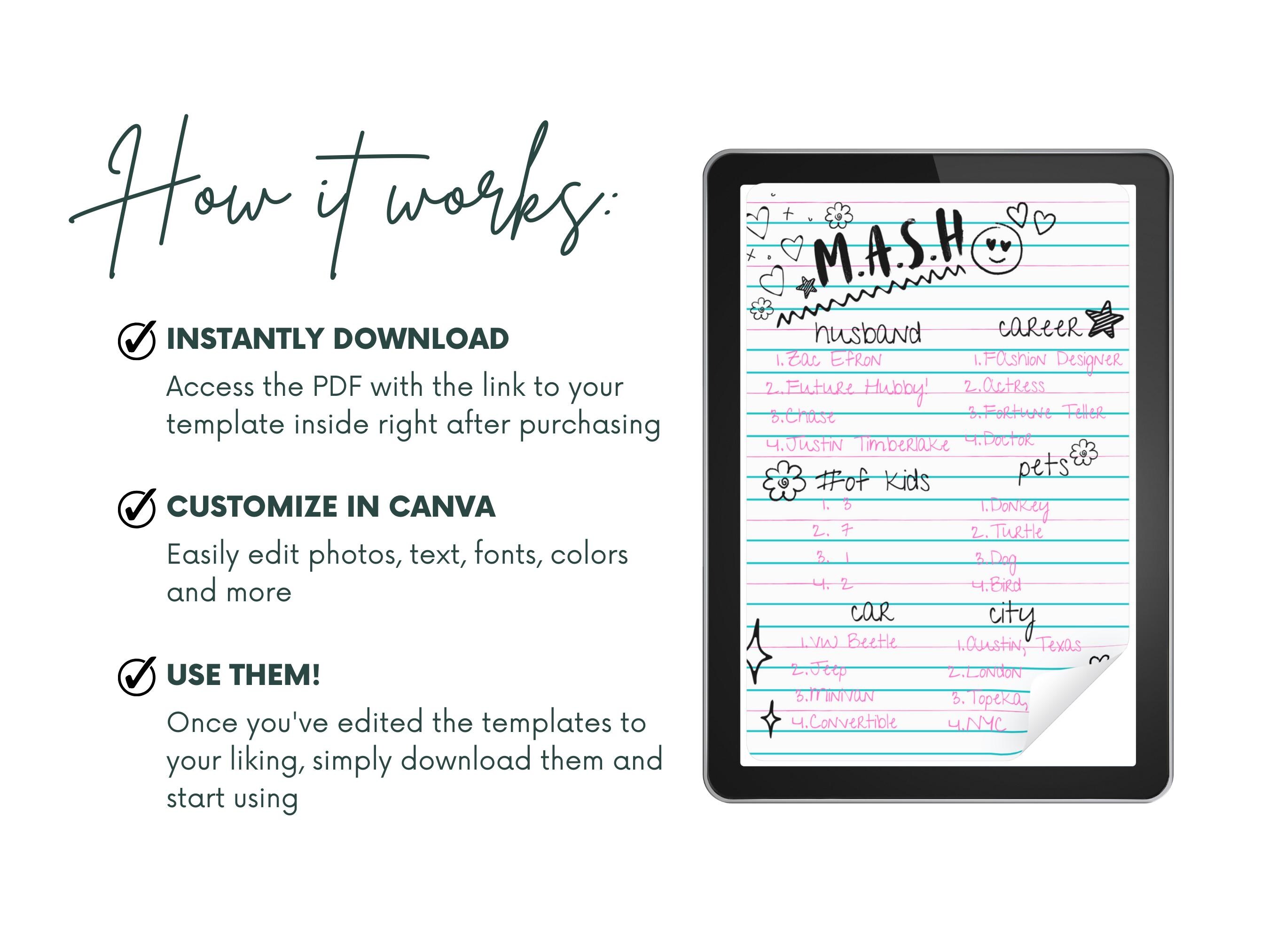 M A S H Game Template Best Templates Resources