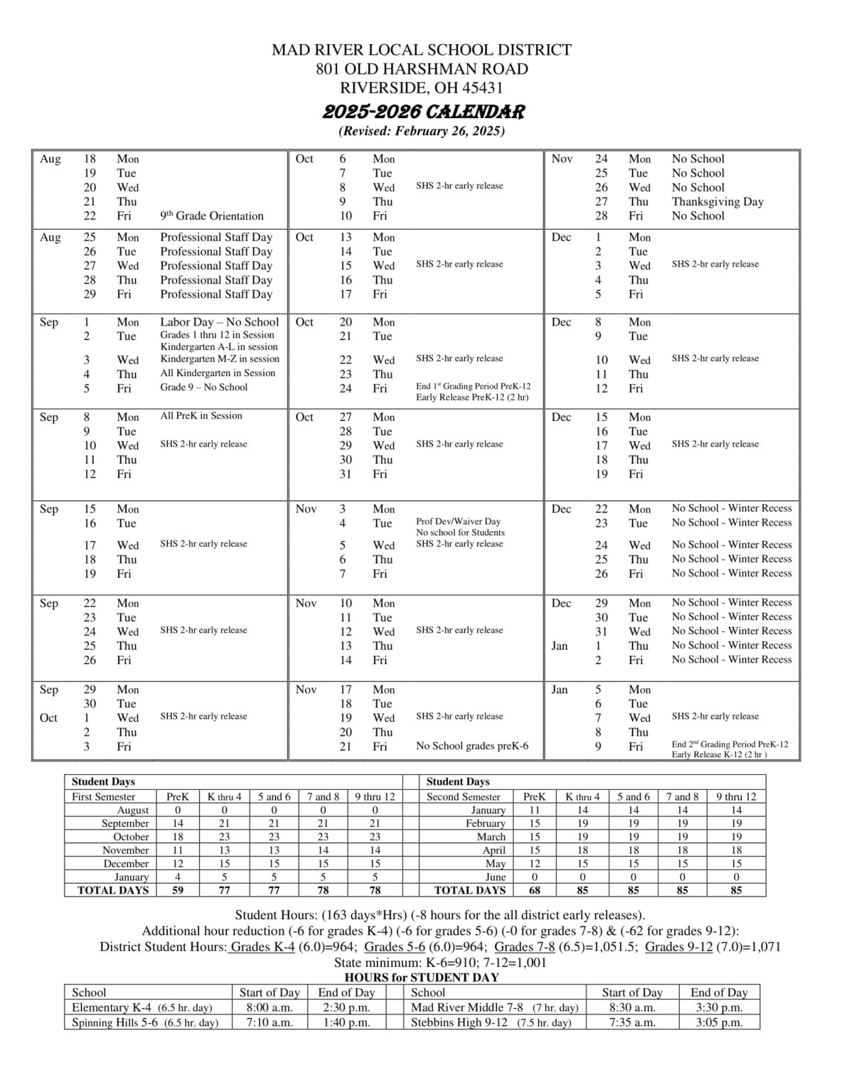 Mad River local school district Calendar 25 26 Revised pdf EduCounty