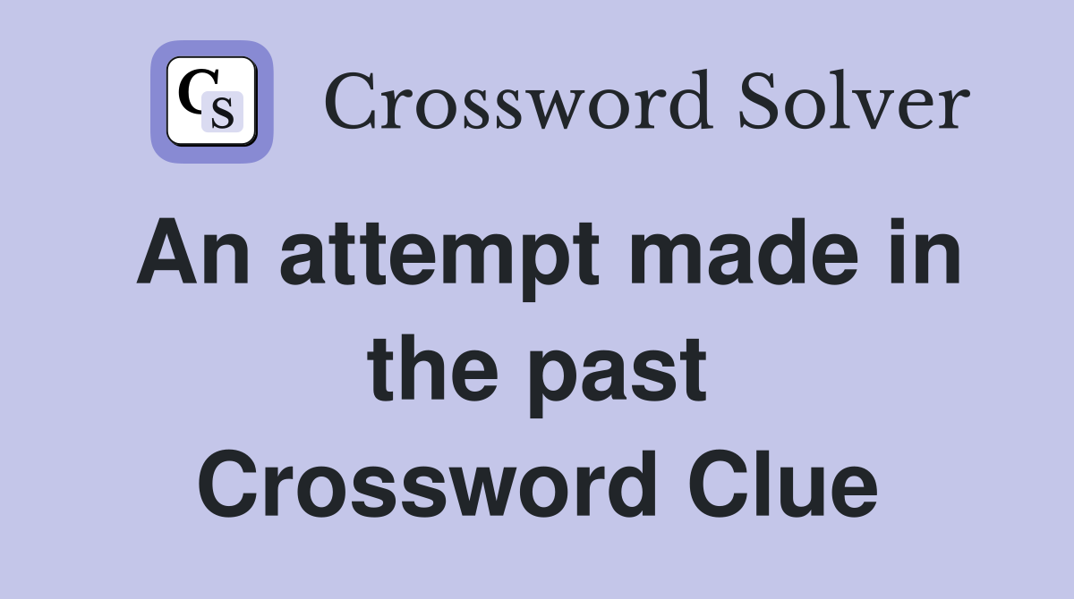 An attempt made in the past Crossword Clue Answers Crossword Solver