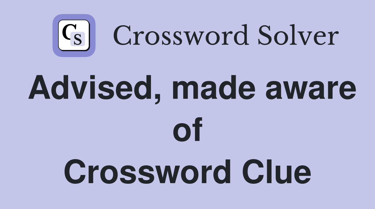 Advised made aware of Crossword Clue Answers Crossword Solver