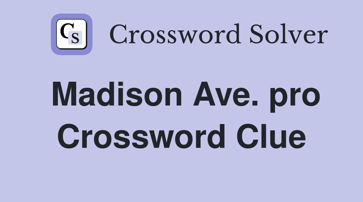 Madison Ave pro Crossword Clue Answers Crossword Solver