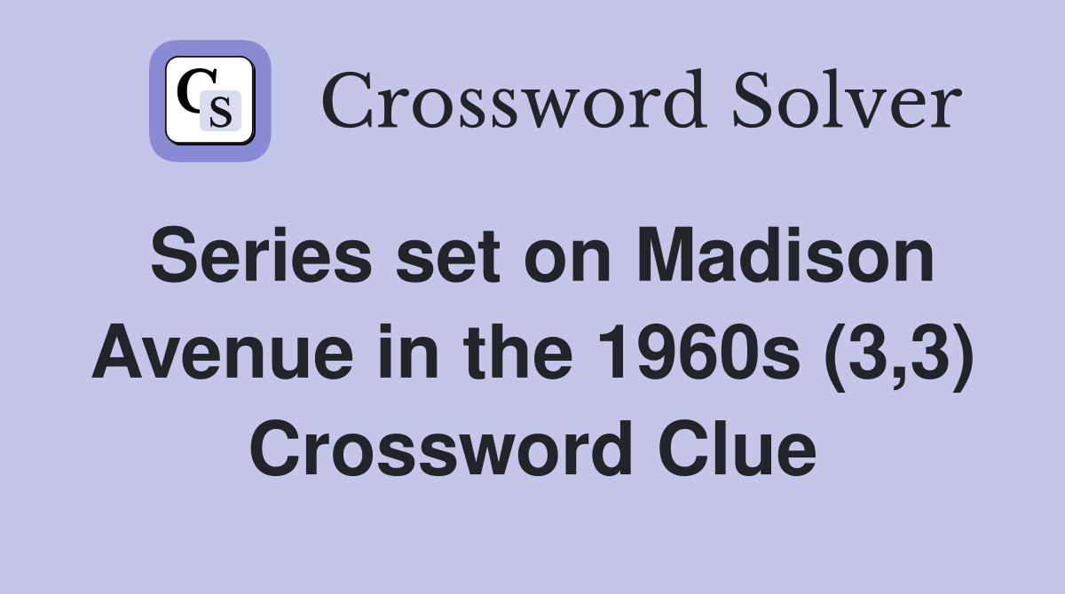Series set on Madison Avenue in the 1960s (3 3) Crossword Clue