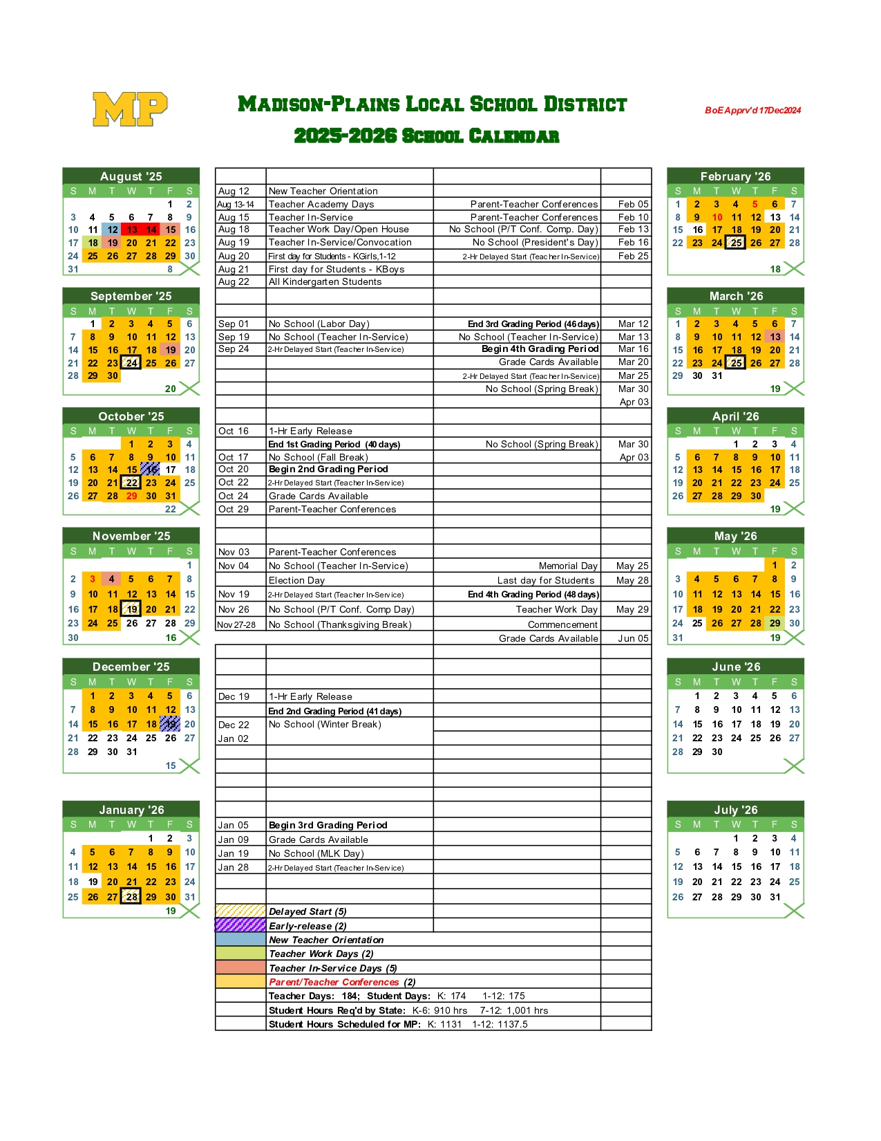 Madison Plains Local School Calendar 25 26 Revised PDF EduCounty