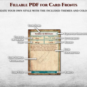 Dnd Magic Item Cards PDF Fillable Customizable Printable Accessory