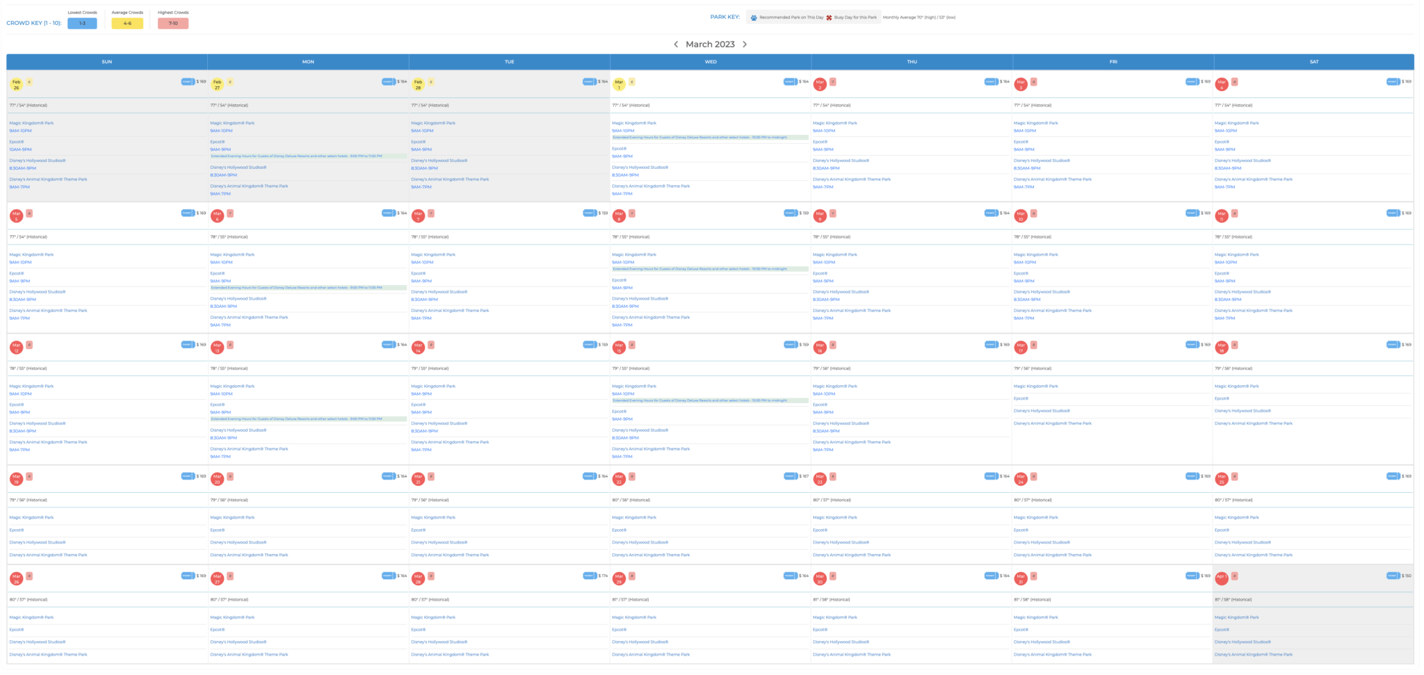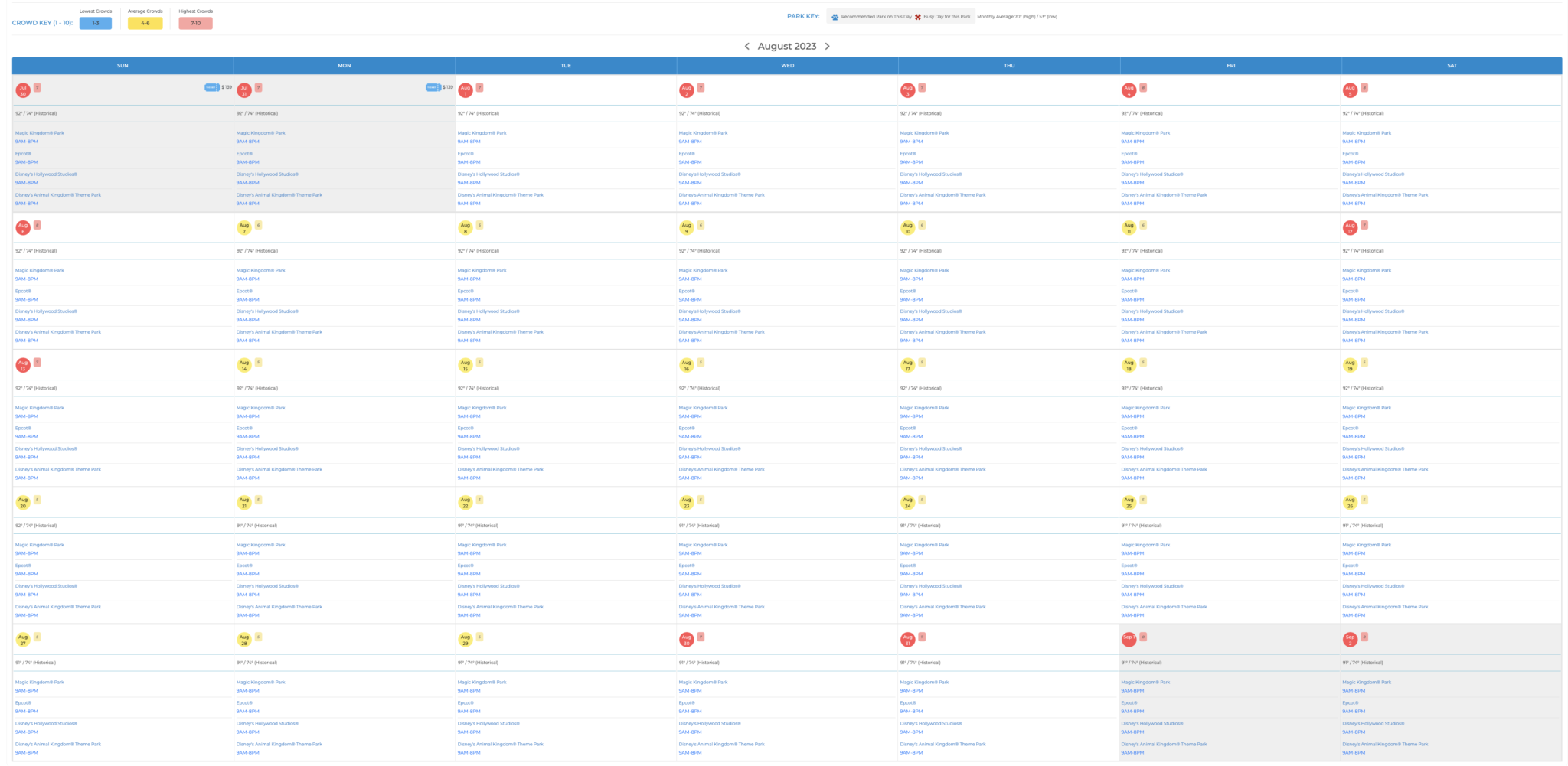 Magic Kingdom Crowd Calendar