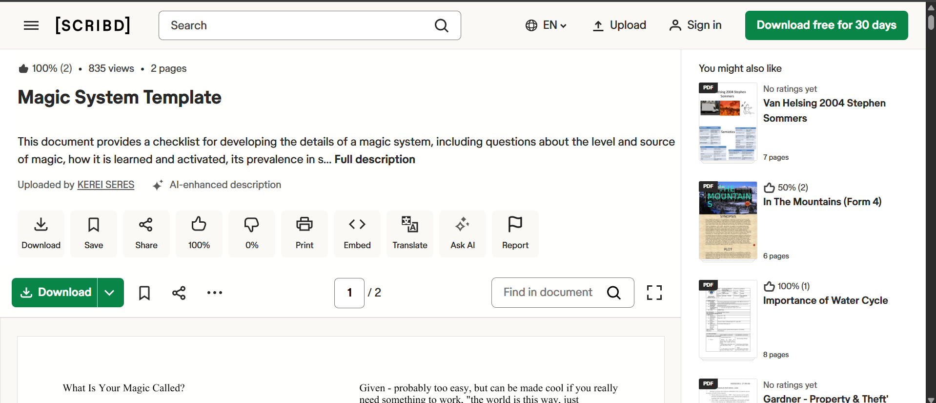 Creating a Magic System Fiction Writing Worksheet Bundle Classful