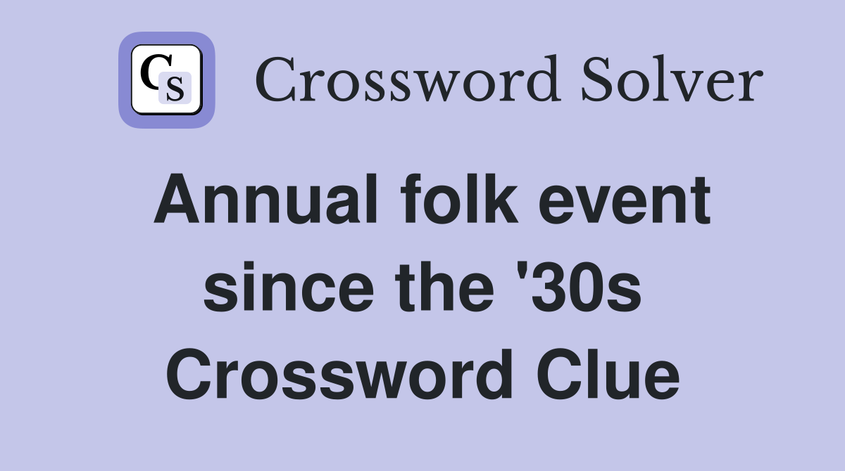 Annual folk event since the #39 30s Crossword Clue Answers Crossword