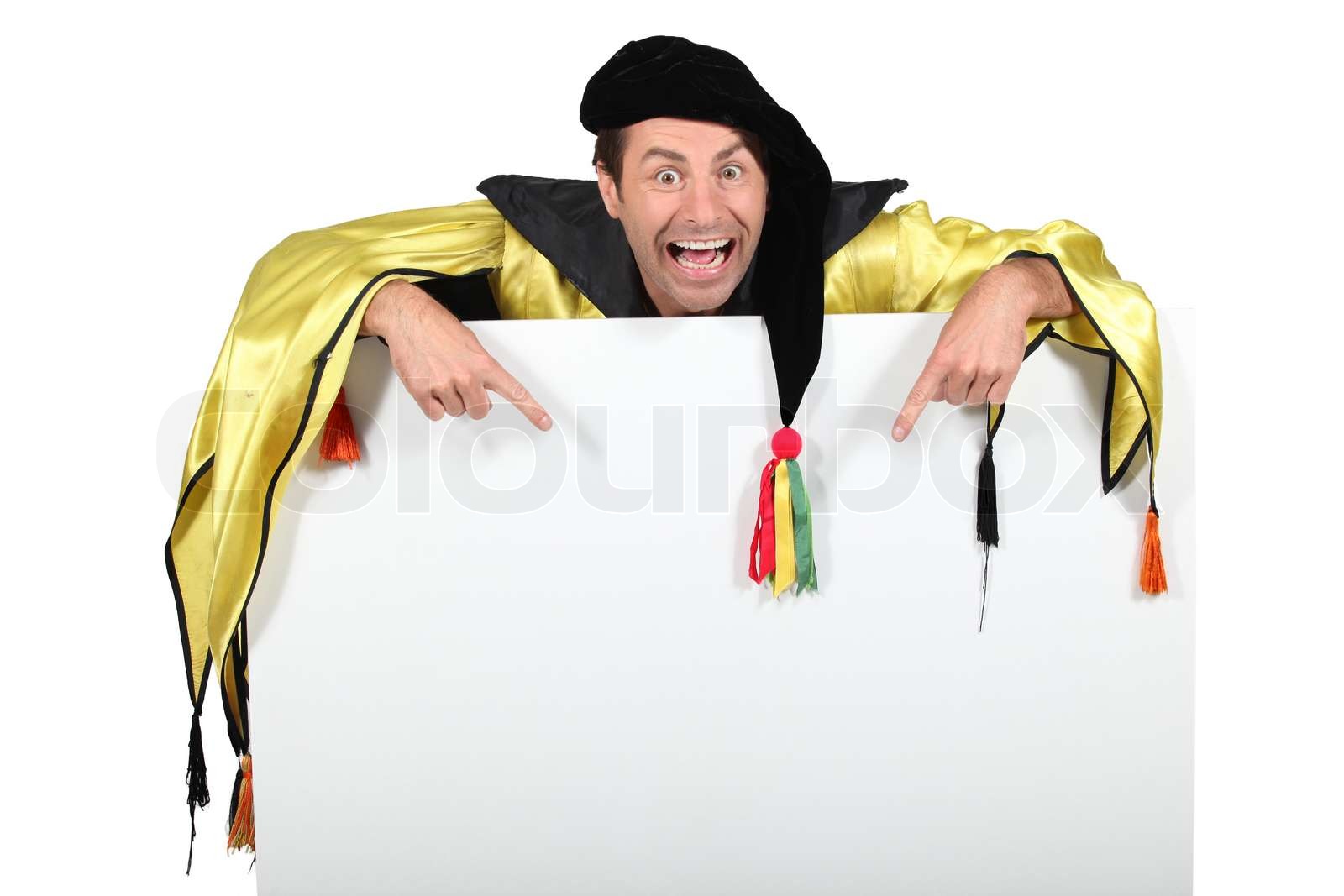Magician pointing blank panel Stock image Colourbox